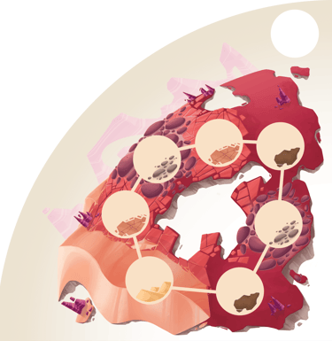 J'ai illustré la couverture, les plateaux de jeu, les pictogrammes et conçu la typographie, en veillant à ce que chaque élément immerge les joueurs dans l'univers du jeu tout en apportant cohérence et harmonie.